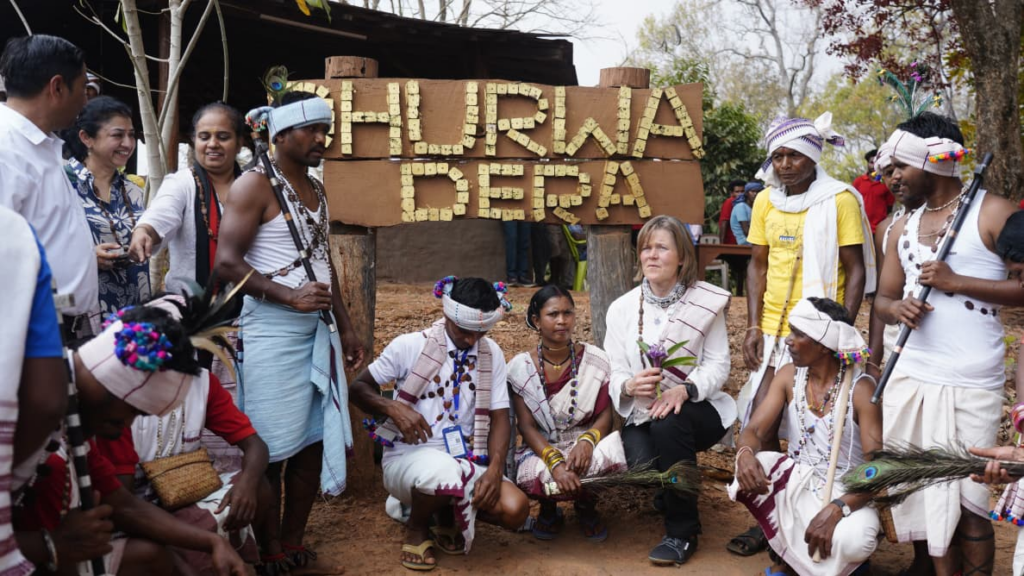 दौरे के दूसरे दिन सुश्री किर्सी बस्तर जिले के ग्राम धुड़मारास पहुंचीं, जहां धुरवा डेरा होमस्टे में उनका पारंपरिक ढंग से स्वागत किया गया। सिहाड़ी और महुए की माला पहनाकर तथा धुरवा नृत्य और स्वागत गीतों के माध्यम से ग्रामीणों ने अपनी संस्कृति की जीवंत झलक प्रस्तुत की। आत्मीय स्वागत से अभिभूत सुश्री किर्सी ने कहा कि इस प्रकार का अनुभव उनके लिए अत्यंत विशेष और अविस्मरणीय है। यह स्वागत केवल सांस्कृतिक प्रदर्शन नहीं, बल्कि बस्तर की सामाजिक एकजुटता और आत्मीयता का सशक्त परिचय था।
