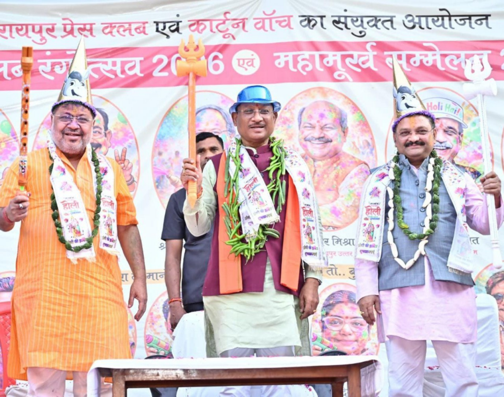 रायपुर. मुख्यमंत्री श्री विष्णु देव साय आज रायपुर प्रेस क्लब द्वारा आयोजित होली मिलन समारोह “रंगोत्सव” एवं “महामूर्ख सम्मेलन 2026” में शामिल हुए। इस अवसर पर मुख्यमंत्री ने प्रदेशवासियों को होली की शुभकामनाएँ देते हुए कहा कि होली केवल रंगों का त्योहार नहीं है, बल्कि यह आपसी प्रेम, सद्भाव और भाईचारे को सुदृढ़ करने का पावन अवसर भी है। यह पर्व हमें छोटी-छोटी अनबन और गिले-शिकवे भुलाकर नए सिरे से संबंधों को मजबूत करने की प्रेरणा देता है।