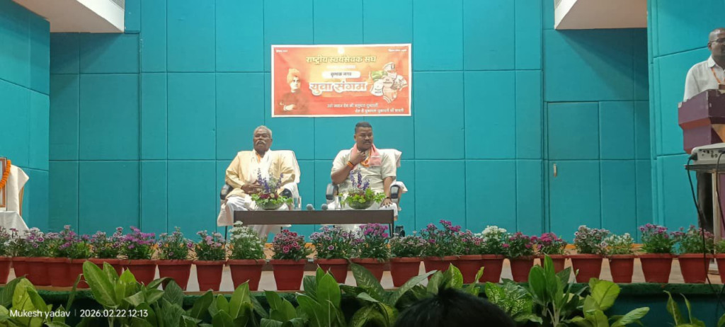 कृषक नगर द्वारा आयोजित युवा संगम का कार्यक्रम कृषि विश्वविद्यालय के विवेकानंद सभागार में संपन्न हुआ। इस अवसर पर रायपुर महानगर प्रचारक श्री मनोज कश्यप ने “युवा कौन है?” विषय पर विचार रखते हुए युवाओं को संबोधित किया। उन्होंने कहा कि युवा एक शक्ति पुंज है। जैसे हीरा तराशने पर चमकता है, वैसे ही युवाओं में श्रेष्ठ विचारों के प्रवाह से सशक्त युवा का निर्माण होता है।